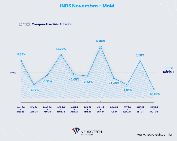 Cenário se manteve estagnado em relação a 2023, mas apresentou queda significativa em relação a outubro deste ano