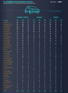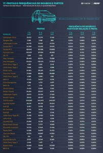 O Boletim analisou o índice de roubos e furtos versus o crescimento das frotas dos modelos mais visados pelos criminosos. “Chama a atenção o aumento de ocorrências envolvendo o Volkswagen T-Cross, com alta de 235,29% nas ocorrências em um ano (51 boletins registrados no primeiro quadrimestre de 2021 e 171 registros entre janeiro e abril de 2022). Analisando os números de ocorrência do T-Cross em relação à sua frota no estado de São Paulo, observa-se que no primeiro quadrimestre de 2021, os roubos e furtos deste SUV representavam 0,11% do total da frota, enquanto no primeiro quadrimestre de 2022, esse percentual subiu para 0,27%. Ou seja, comprovadamente, houve um aumento no número de ocorrências, o que sugere um interesse maior dos bandidos pelo SUV da Volkswagen”, afirma o Departamento de Pesquisas em Economia do Crime da Fecap, Erivaldo Costa Vieira.