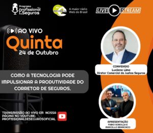 O programa Profissional de Seguros desta quinta-feira (24.10), receberá Luciano Lima, diretor comercial da Justos Seguros. O executivo vai falar sobre a importância do canal corretor e compartilhar um pouco da sua experiência de 40 anos de atuação no setor.