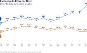 O IPSA em abril apresentou crescimento para o gênero masculino, 8,2%, já para o sexo feminino houve estabilidade, permanecendo em 5,8%. “Os números mostram que a distância entre os gêneros aumentou ainda mais, com os homens pagando 36,2% a mais que as mulheres”.