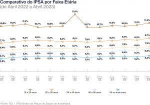 Observando o IPSA por faixa etária, o executivo destaca que o aumento do índice geral afetou de forma similar todas as faixas etárias. “O destaque fica para a faixa entre 46 e 55 anos, que cresceu 7,9% no último mês”.