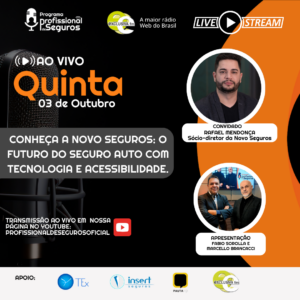 As transformações do seguro Auto e como a inovação e a tecnologia estão democratizando o acesso ao produto mais popular do Brasil. Esses serão alguns dos assuntos debatidos no programa Profissional de Seguros desta quinta-feira (03.10), que a partir das 18h receberá Rafael Mendonça, sócio-diretor da Novo Seguros.