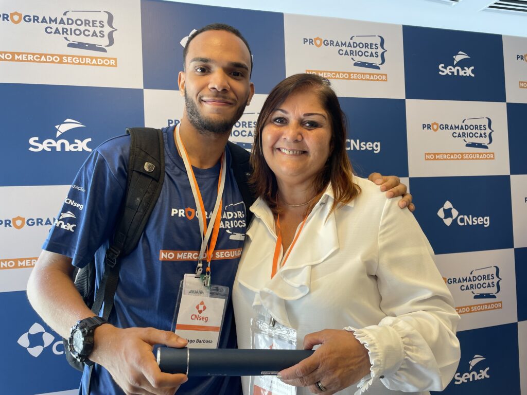 O jovem é um dos 50 formandos que concluíram a formação do curso Programadores Cariocas no Mercado Segurador, parceria entre a Confederação Nacional das Seguradoras (CNseg) e o Serviço Nacional de Aprendizagem do Comércio (Senac-RJ), com o apoio da Prefeitura do Rio de Janeiro, já com uma vaga em uma companhia do setor.