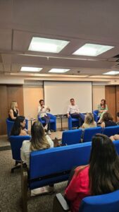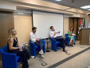 A Roda de Conversa sobre a “comunicação no mercado de seguros”, mediado por Carol Rodrigues, editora da Revista Cobertura, contou com a prarticipação de Flávio Otsuka, diretor de Estratégia de Crescimento e Marketing da Tokio Marine Seguradora; Oliver Haider, superintendente de Marketing da Porto, e Gabriela Rosati Pereira, diretora Executiva de Marketing, Comunicação e Digital da Alper Seguros.
