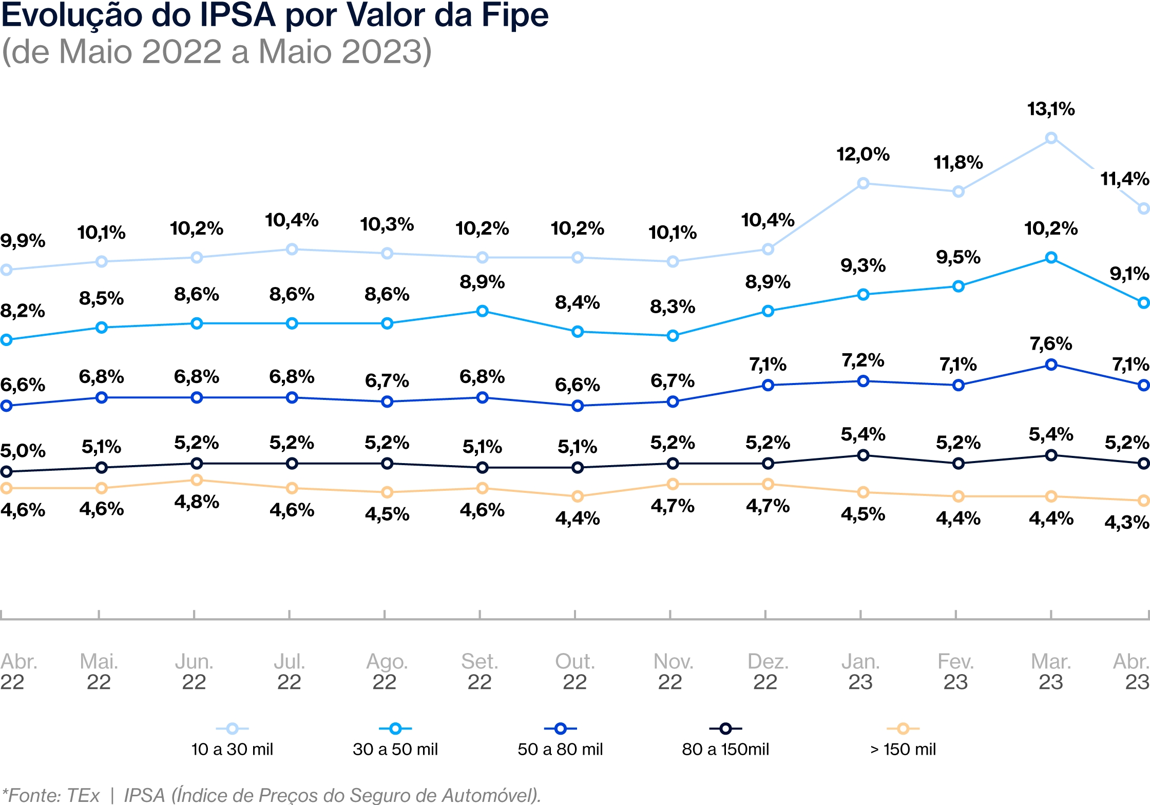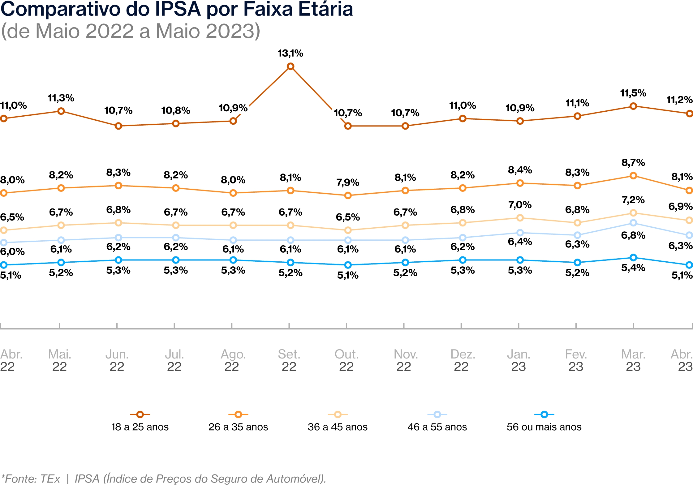 Vale lembrar que o IPSA é produzido com base nos dados do TEx Analytics, ferramenta de inteligência de mercado desenvolvida pela TEx e dividido em treze indicadores: IPSA, que mede a inflação geral e leva em consideração segurados de ambos os sexos de todo o país, IPSA por gênero, IPSA por faixa etária, IPSA por estado civil, IPSA por população, IPSA por região, IPSA por idade do veículo, IPSA por tipo de Seguro, IPSA por valor da tabela Fipe, Ranking de mais Cotados por Combustíveis, Ranking de Carros Elétricos Mais Cotados, Ranking de Carros Híbridos mais Cotados, Comparativo do IPSA por Combustível, e Ranking de carros mais cotados pelo TELEPORT.