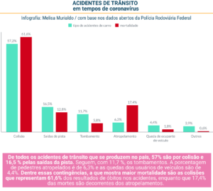 Pela pandemia, foi observada uma queda de 13,1% do trânsito, mas mesmo assim continua sendo uma das maiores causas de morte no Brasil. Segundo a Organização Mundial da Saúde (OMS), o Brasil está na quarta posição do ranking mundial de mortes por acidentes de trânsito.