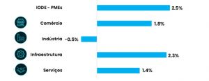 - Segundo IODE-PMEs, setores que mais se destacaram foram Comércio (+1,8% ante o primeiro trimestre de 2022), Serviços (+1,4%) e Infraestrutura (+2,3%)
