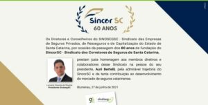 Para o presidente do SindsegSC, comemorar seis décadas desta grande entidade defensora do profissional habilitado Corretor de Seguros, é sim muito satisfatório e enriquecedor para nosso mercado catarinense.