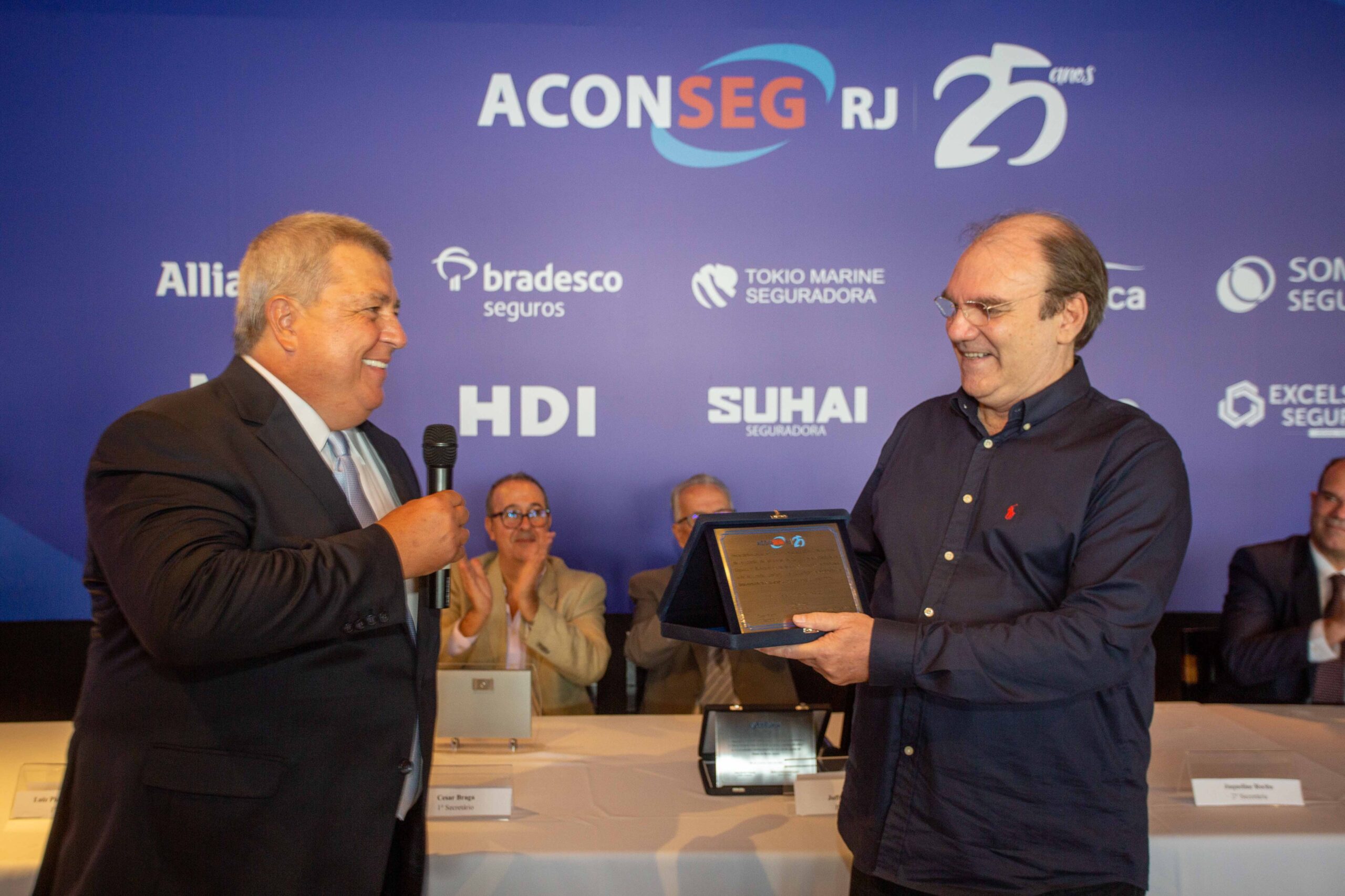 Após o discurso, a Aconseg-RJ como forma de reconhecer e agradecer a confiança, homenageou as seguradoras parceiras e os patrocinadores do evento com placas entregues pela diretoria da entidade. Receberam homenagem lideranças da Allianz Seguros (Lívia Prata, diretora regional); Bradesco Seguros (Ney Ferraz Dias, diretor presidente); Excelsior Seguros (Alvanir Macedo, superintendente regional); HDI Seguros (Paul Canarin, diretor comercial); MAG Seguros (Vinicius Brandão, gerente regional); Porto (Roberto Santos, diretor-presidente); SulAmérica Seguros (Solange Zaquem, diretora comercial); Sompo Seguros (Eduardo Fazio, diretor comercial); Suhai Seguradora (Eduardo Grillo, diretor executivo); Tokio Marine Seguradora (José Adalberto Ferrara, presidente) e Universidade Aconseg (professor e decano Wagner Attina).