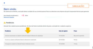 2. Verifique eventuais pendências indicadas ao acessar seu perfil, como na primeira coluna da imagem abaixo.