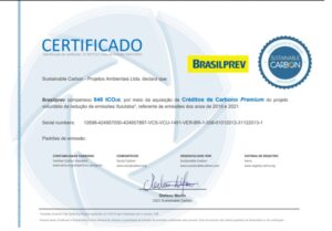 A Brasilprev, empresa que faz parte da holding BB Seguridade e que é líder e especialista em previdência privada, está engajada em contribuir com a redução das emissões de carbono na atmosfera. A medida, que está atrelada aos compromissos da companhia com as práticas ASG, assumidos em 2022 (detalhes abaixo), já mostra os primeiros resultados. Um deles diz respeito à certificação recebida pela consultoria Sustainable Carbon, por ter compensado 848 tCO²e de Gases de Efeito Estufa (GEE), referentes aos anos de 2019 e 2021.