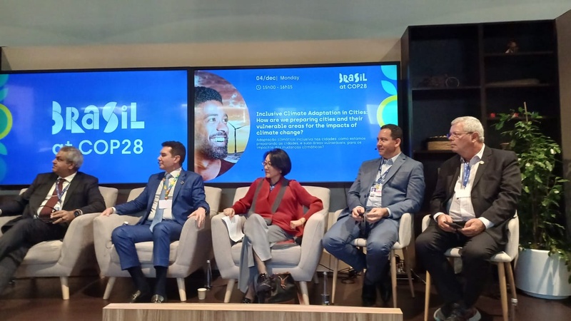 Dyogo participou do painel “Adaptação e Perdas e Danos”, promovido pelo Ministério das Cidades, no Espaço Brasil da COP-28, em Dubai, e que contou também com a participação do ministro das Cidades, Jader Filho; o prefeito de Niterói, Axel Grael; o diretor geral da Coalização para Infraestrutura Resiliente a Desastres (CDRI), Amit Prothi, e o chefe do escritório das Nações Unidas para Redução de Riscos de Desastres (UNDRR), Mami Mizoturi.