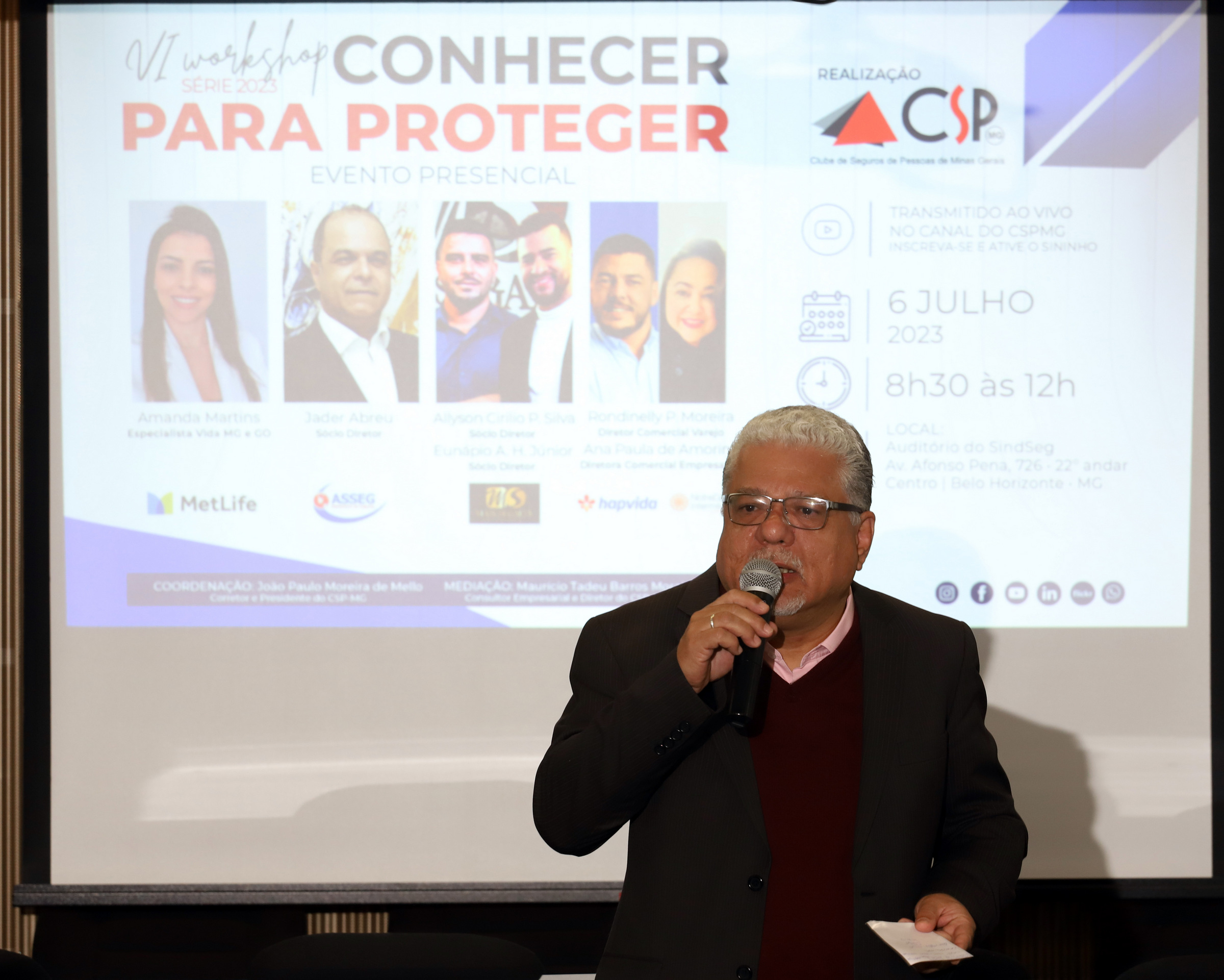 O Clube de Seguros de Pessoas de Minas Gerais (CSP-MG) recebeu, no dia 6 de julho, no auditório do SindSeg MG/GO/MT/DF, as parceiras MetLife, Asseg Assesssoria de Seguros, Mais Segally Seguros e Hapvida NotreDame Intermédica.