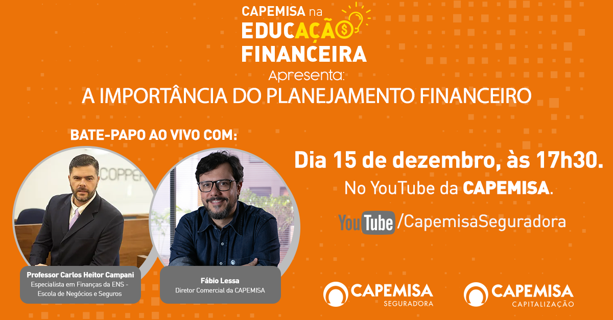Além dos canais digitais para a divulgação de conteúdo de qualidade com foco nas ferramentas de educação financeira, a CAPEMISA fará uma live no seu canal do YouTube https://www.youtube.com/CapemisaSeguradora, em parceria com a Escola de Negócios e Seguros (ENS). O evento ocorrerá na Semana da Educação Financeira (ENEF), no dia 15/12, às 17h30, com a participação do professor Carlos Heitor Campani, PhD em Finanças e pesquisador da ENS.