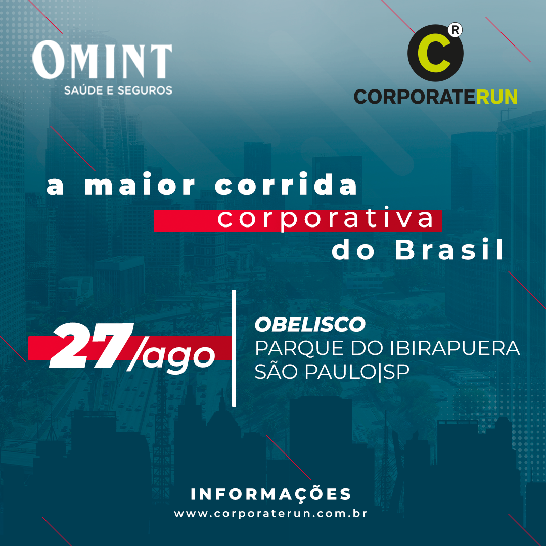 Grande fomentador de saúde, bem-estar e qualidade de vida, o Grupo Omint patrocina mais uma edição da Corporate Run, evento criado em 2005 para impulsionar a saúde e a prática esportiva no ambiente corporativo. A corrida acontece no dia 27 de agosto, com largada do Obelisco, no Parque do Ibirapuera (SP), às 7 horas.