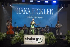 Com uma apresentação envolvente e cheia de sensibilidade, a cantora Hana Pickler foi a atração principal da noite comemorativa do centenário do SindsegSC. Sua performance tocou o público presente, coroando a celebração com emoção, arte e elegância.