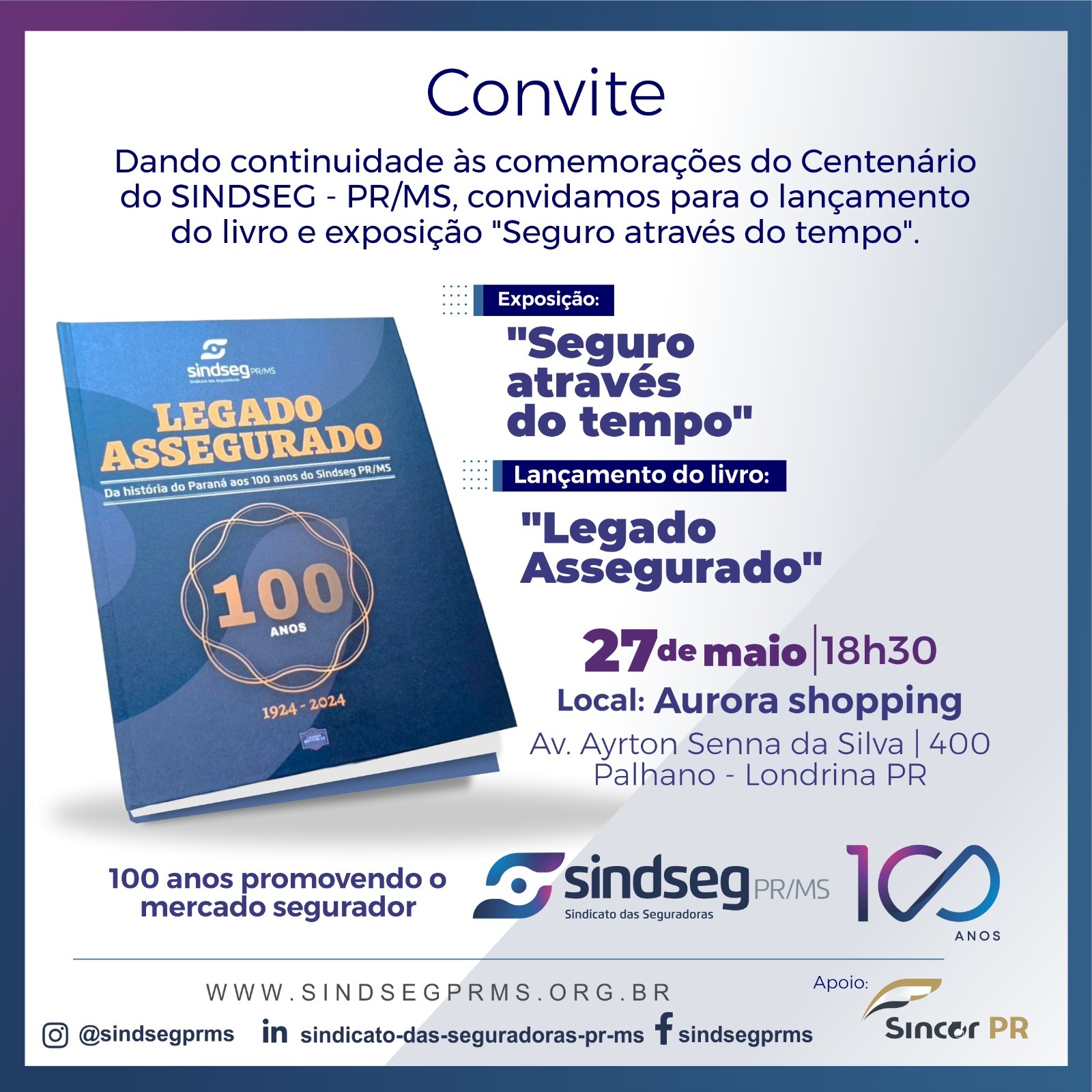Iniciando pelo Norte do Paraná, uma exposição chamada “Seguro através do tempo”, que acontece no final do mês em Londrina (segunda-feira 27/05 às 18h30 no Aurora Shopping) e Maringá (terça-feira 28/05 às 18h30 no Metrópole Maringá), vai marcar o lançamento do livro do Centenário chamado “Legado Assegurado”, e também, de uma edição especial de um selo comemorativos dos Correios.