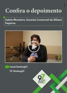 Sua história com o SindsegSC, já vem de longa data, “O SindsegSC teve uma presença importante na minha vida porque quando eu estava chegando aqui, o Sindicato me ajudou a entender o mercado catarinense”, comenta Salete em seu depoimento.