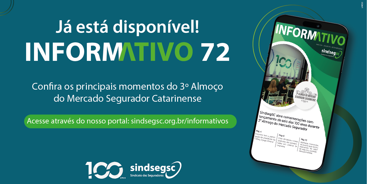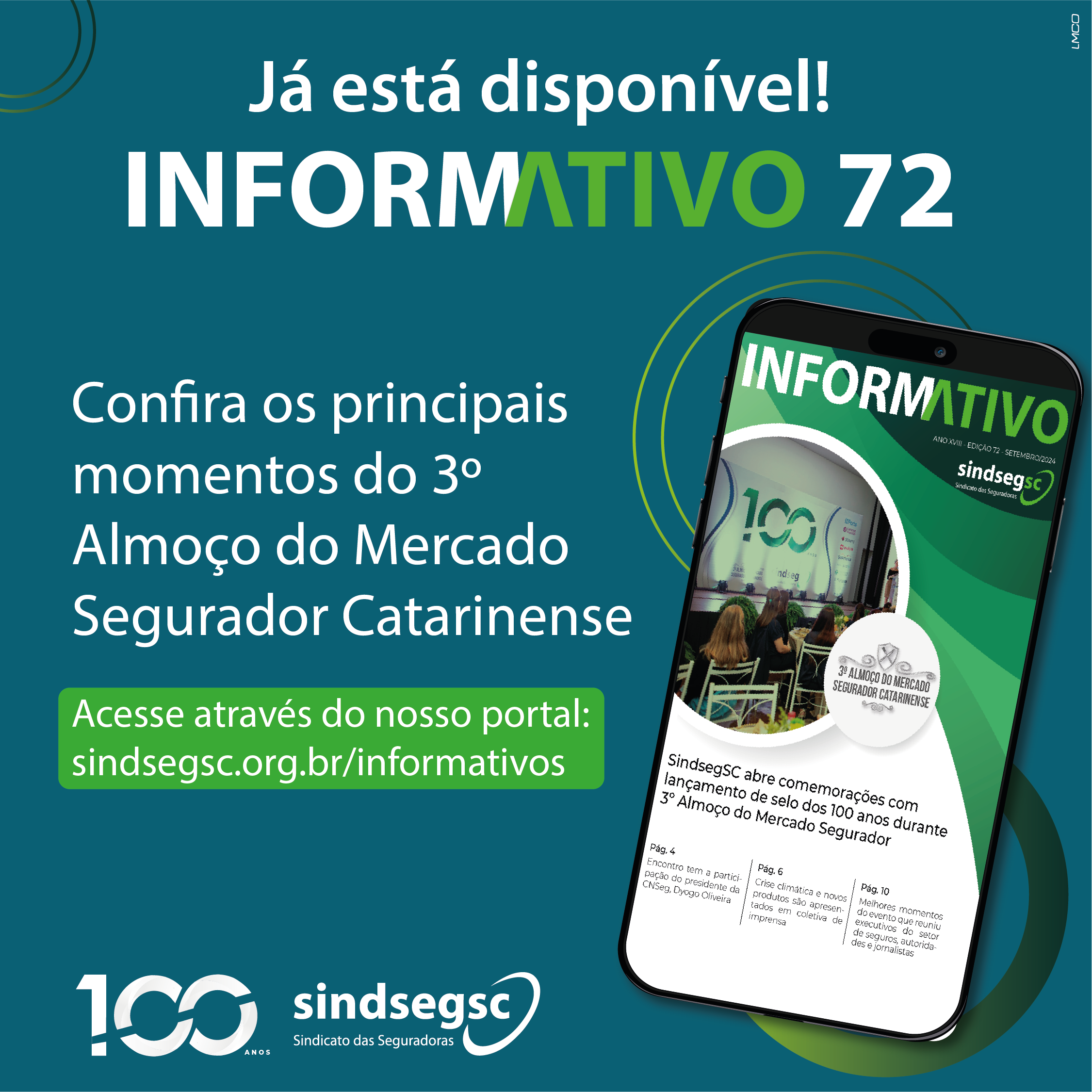 O Sindicato das Empresas de Seguros Privados, de Resseguros e de Capitalização no Estado de Santa Catarina (SindsegSC) deu início às celebrações pelo centenário da entidade com a realização do 3º Almoço do Mercado Segurador Catarinense e apresentação da logomarca que identifica a constante evolução do sindicato. O informativo do SindsegSC em circulação traz os detalhes de como foi o almoço que contou com a presença do diretor-presidente da Confederação Nacional das Seguradoras (CNSeg), Dyogo Oliveira.