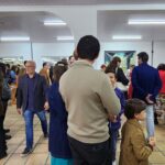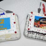 todos tomavam o café servido juntamente com o bolo comemorativo.