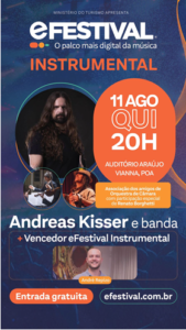 Show eFestival Instrumental: apresentação do Vencedor do eFestival Instrumental 2022 – André Repizo (Público Geral), e ainda a Orquestra da ULBRA com participação especial de Renato Borghetti e apresentação final de Andreas Kisser e banda.