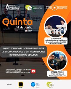 As novidades do Insurtech Brasil 2025 serão tema do programa profissional de Seguros. Na próxima quinta-feira, 19 de junho, a partir das 18h, os apresentadores Fabio Sorolla e Marcello Brancacci receberão o CEO, José Prado, e Juliana Montez, organizadora do encontro.