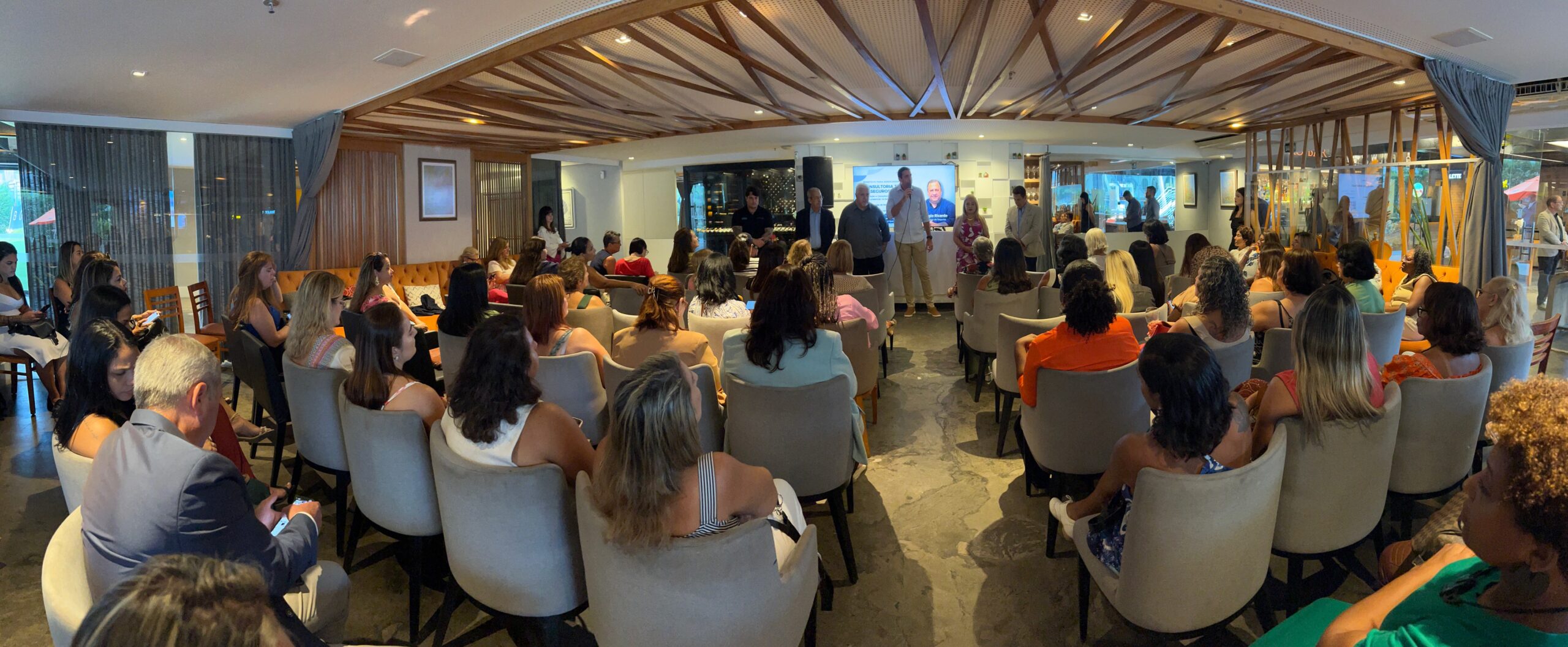 Após a palestra e a homenagem, as convidadas foram recebidas para um happy hour especial, promovendo um ambiente descontraído e acolhedor para trocas de experiências, fortalecimento de laços profissionais e muita celebração.