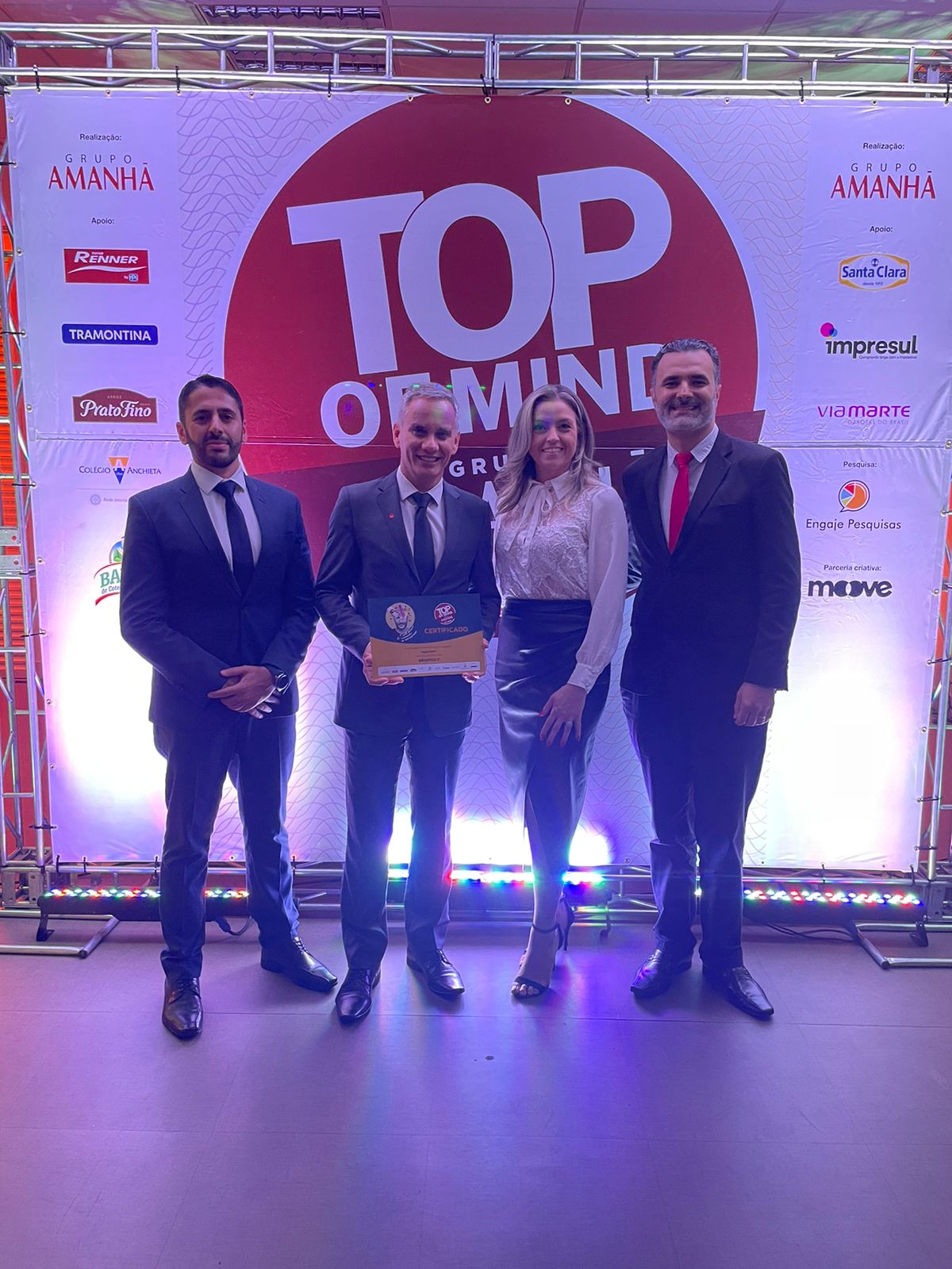 O Grupo Bradesco Seguros recebeu o Top of Mind RS, premiação da Revista Amanhã, por ser a seguradora mais lembrada no estado do Rio Grande do Sul. A cerimônia da 33ª edição do prêmio aconteceu na última terça-feira, 11, em Porto Alegre, com transmissão no canal do Youtube da revista. O superintendente executivo da Bradesco Vida e Previdência, Anderson Fabiano Mundim, e os superintendentes comerciais, Janaina Minatti, Leandro Vaz dos Santos e Sallam Saleh, representaram a companhia na premiação.
