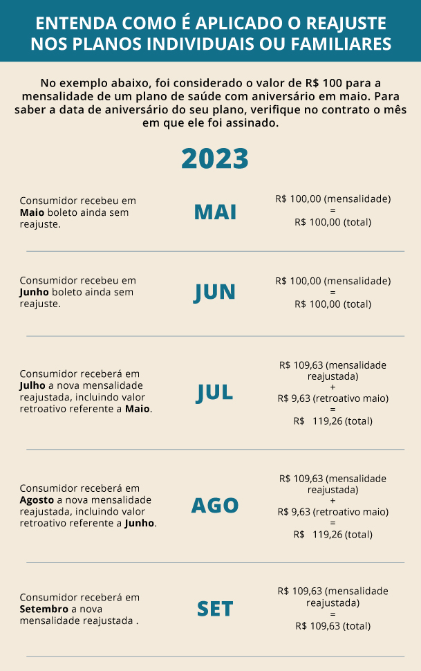 O índice de 2023 foi apreciado pelo Ministério da Fazenda e aprovado em reunião de Diretoria Colegiada na manhã desta segunda-feira, 12/06/2023. A decisão será publicada no Diário Oficial da União e o reajuste poderá ser aplicado pela operadora no mês de aniversário do contrato, ou seja, no mês da data de contratação do plano. No caso dos contratos com aniversário em maio, junho e julho, será autorizada a cobrança retroativa relativa a esses meses.