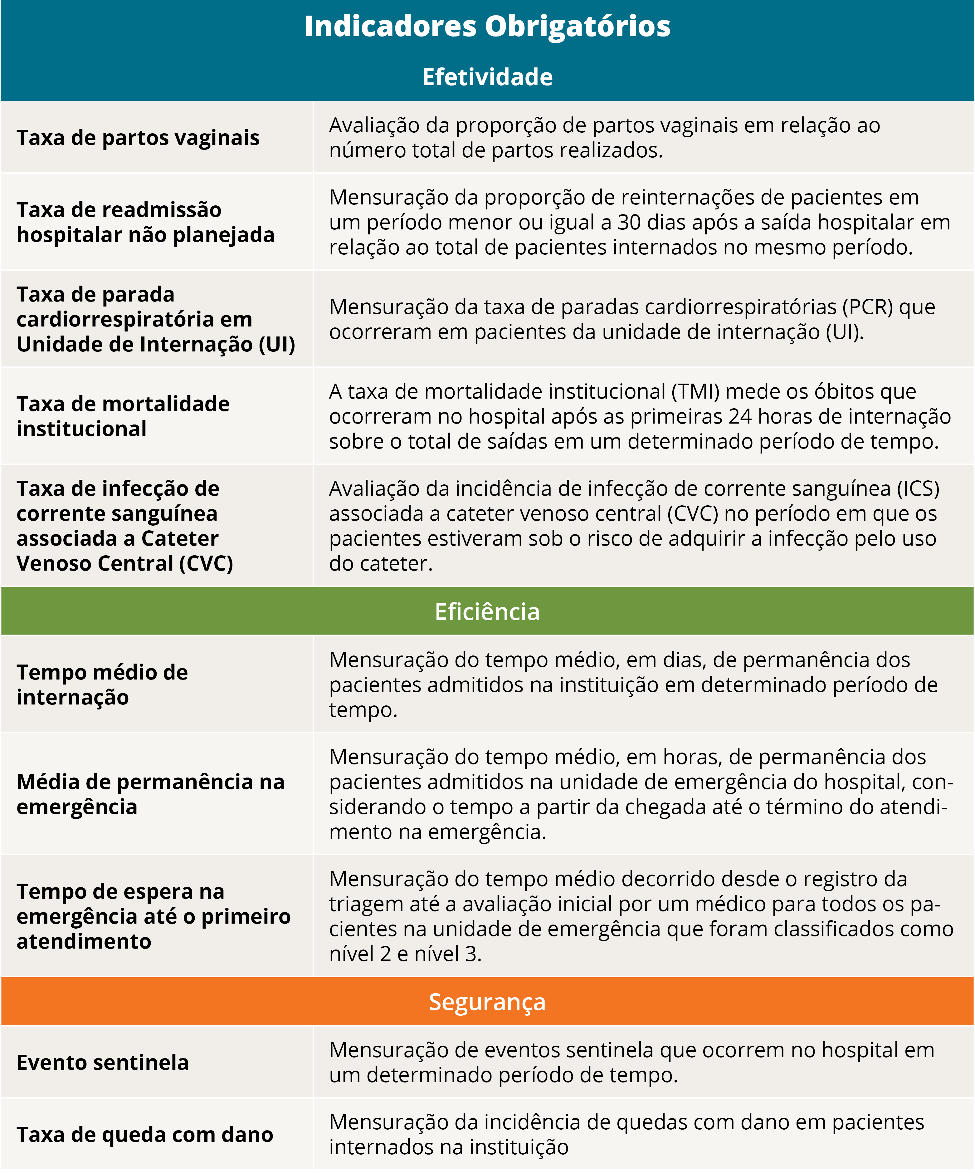 Os indicadores de efetividade referem-se aos desfechos associados aos procedimentos realizados e à adesão de protocolos institucionais validados. Os de eficiência avaliam a qualidade e agilidade dos processos, buscando grau máximo de cuidado efetivo com os recursos disponíveis. E os indicadores de segurança do paciente avaliam as estratégias para evitar danos desnecessários.