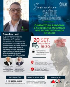 “Considero uma oportunidade ímpar debater ‘O impacto da pandemia e as recentes mudanças nos seguros e planos de saúde’, no Seminário Saúde Suplementar, que o Clube de Seguros de Pessoas de Minas Gerais (CSP-MG) está realizando”, afirma o superintendente de Estudos e Projetos Especiais da FenaSaúde, Sandro Leal, palestrante do evento.