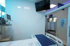 Já as UAPS – Unidade de Apoio ao Pronto-Socorro, é destinada a pacientes que carecem de uma internação rápida, contando com o melhor atendimento, tecnologia de ponta e acolhimento assistencial. O espaço foi ampliado e passou por uma significativa reestruturação. Para isso, foi construído um prédio que abriga a expansão e acesso direto ao Pronto-Socorro Geral, com aumento da capacidade de atendimento em 60%. Em uma área integralmente nova, a unidade agora conta com 19 leitos individuais, oferecendo expressiva privacidade e cores harmoniosas, deixando o ambiente mais agradável e acolhedor e com todo o suporte para garantir a higiene local. Seu espaço físico também aumentou em 71%, passando para 310m² de área construída.