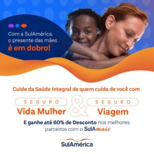 Neste domingo, dia 08 de maio, para cuidarem da sua saúde, as clientes SulAmérica terão descontos de até 60% em lojas parceiras através dos benefícios da plataforma SulA Mais. Outra novidade é a possibilidade de contratação do Seguro Viagem com extensão COVID com 30% de desconto – um produto desenvolvido para facilitar a vida de quem viaja, garantindo, entre outras vantagens, a cobertura de despesas farmacêuticas, estadias e retorno de menores e acompanhantes do destino.
