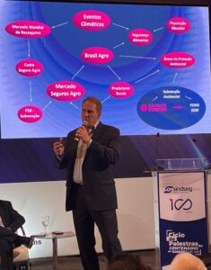Para o executivo, no contexto dos desafios climáticos, fica evidenciada a importância da segurança alimentar e do papel fundamental do setor agrícola brasileiro. O Brasil é um dos maiores produtores e exportadores de produtos agrícolas do mundo, sendo capaz de alimentar mais de 1 bilhão de pessoas, mas segundo ele, não vem dando o devido cuidado à sua produção tanto do ponto de vista do investimento do governo em subvenção, quanto na conscientização dos produtores sobre a necessidade do seguro agrícola. “Apenas 20% da área cultivada no Brasil está segurada, na Argentina, 60%”, comparou. “A sinistralidade deste segmento no Brasil nos últimos cinco anos foi de 100%. Na Argentina, com 60% de área protegida e uma massa crítica maior e diversificação melhor, a sinistralidade foi a 58% para os mesmos últimos cinco anos. Uma diferença estrutural importante, relacionada à baixa penetração que o seguro tem”, avaliou.