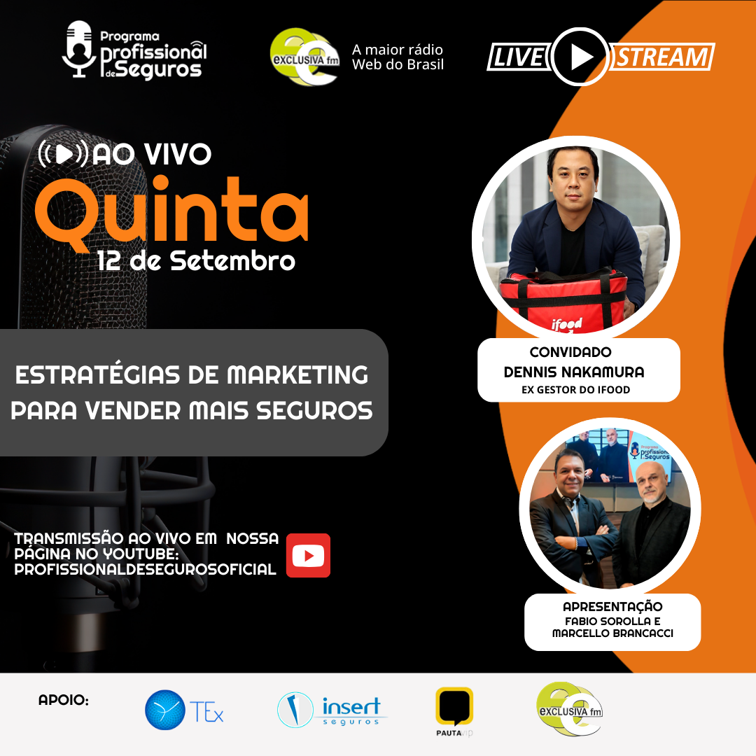 Esse será o tema do programa Profissional de Seguros, na próxima quinta-feira (12.09), com presença do empresário Dennis Nakamura, ex-gestor do iFood