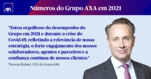 “Estou orgulhoso do desempenho do Grupo em 2021 e durante a crise do Covid-19, refletindo a relevância de nossa estratégia, o forte engajamento dos nossos colaboradores, agentes e parceiros e a confiança contínua de nossos clientes.” afirma Thomas Buberl, CEO do Grupo AXA