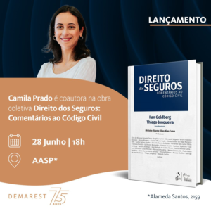 Camila Prado, sócia da área de Seguros, Resseguros e Previdência Privada e Saúde Suplementar do Demarest Advogados, participa nesta quarta-feira, dia 28 de junho, do lançamento da obra coletiva “Direito dos Seguros: Comentários ao Código Civil”.