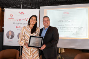 Durante o evento, o CVG-SP deu as boas-vindas à nova benemérita Austral Resseguradora. O diretor Renato Barbosa entregou a placa de associada para Gisele Guimar, Life Reinsurance Underwriter da Austral Re. “Espero que possamos colaborar com ideias e trazer mais energia, foco e bons negócios para todos”, disse. Em seguida, o diretor anunciou o lançamento do inédito “Prêmio Seguro Paulista”, criado pelo CVG-SP para reconhecer o trabalho dos profissionais de linha de frente das seguradoras no atendimento aos corretores de seguros.