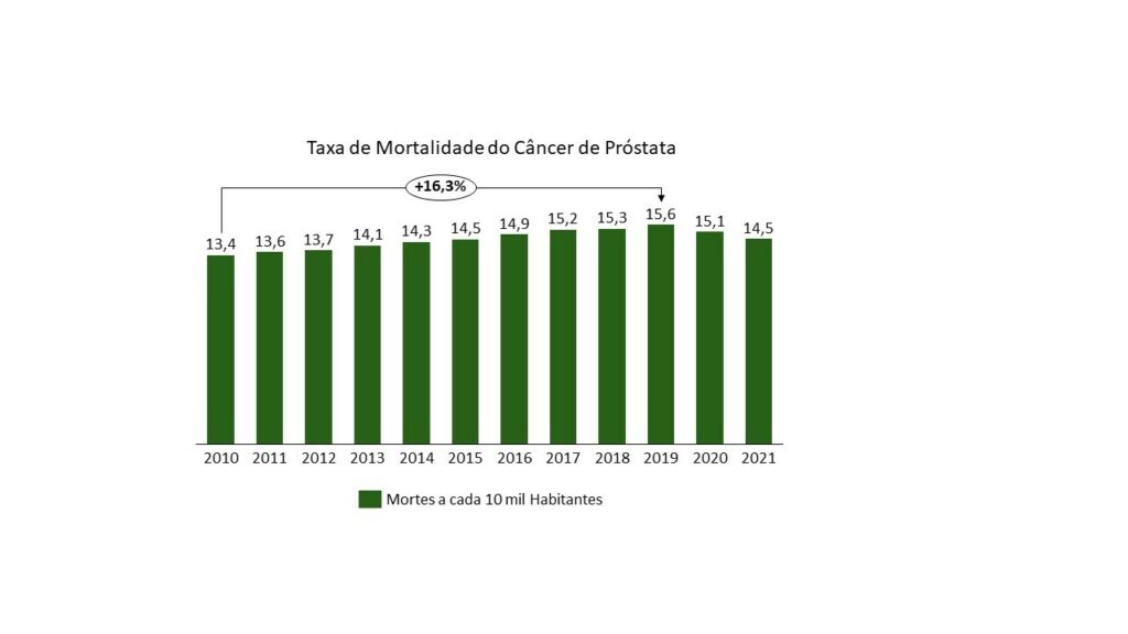 Dados do Sistema de Informação sobre Mortalidade, do Ministério da Saúde, divulgados recentemente, revelaram que 16.055 homens brasileiros morreram em decorrência de câncer de próstata somente em 2021, o que corresponde a cerca de 44 mortes por dia. Entre 2010 e 2021, a doença matou mais de 174 mil homens no país.